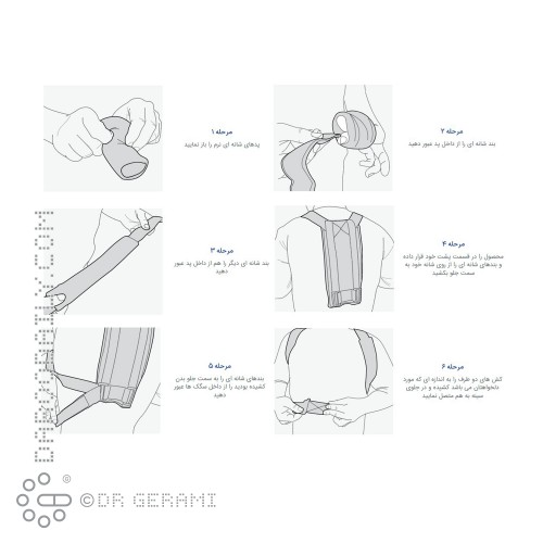 قوز بند را دور قفسه سینه قرار دهید و کاملا فیکس کنید ، سپس کش را تا جایی که می توانید بکشید تا کاملا بر روی کمر سفت شود .